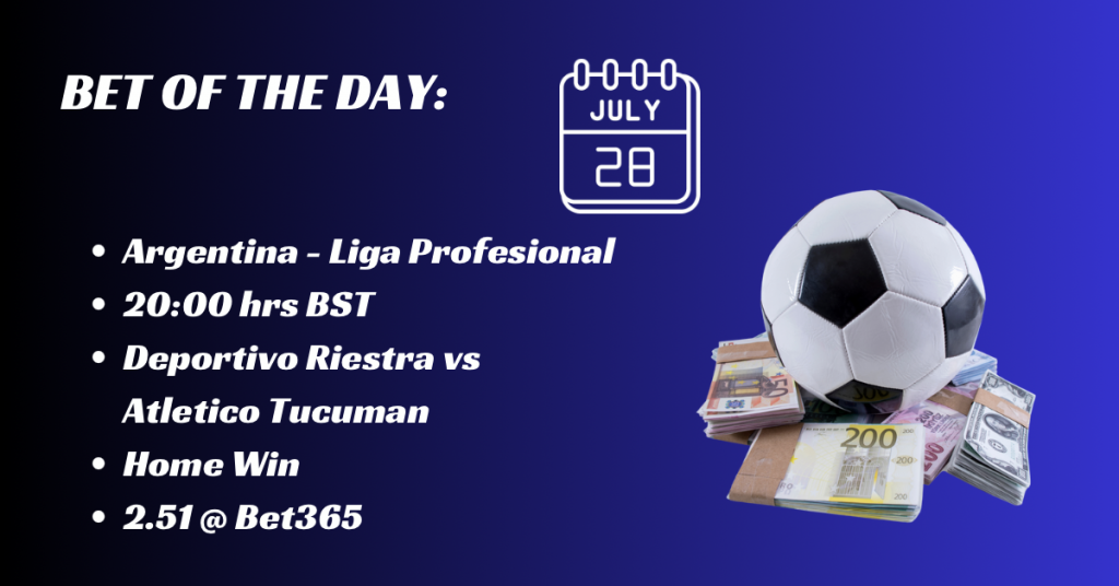 Riestra are tenth and Atletico fifth but it’s early days and only two rounds of matches have been played. The home win has to be worth a punt a odds of 2.51 or thereabouts as since January 2024 Riestra have won all three matches played against Atletico at an aggregate score of 6 – 0.