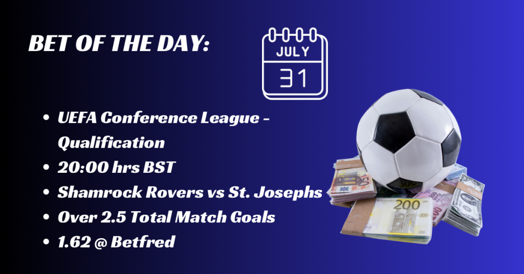 The last ten competitive games involving Shamrock Rovers have averaged 2.9 goals. The last ten involving St. Josephs have averaged 3.6. Shamrock Rovers won the first leg of this tie 0 – 4 last week. Even at a canter this evening they should come close to repeating that score with home advantage.