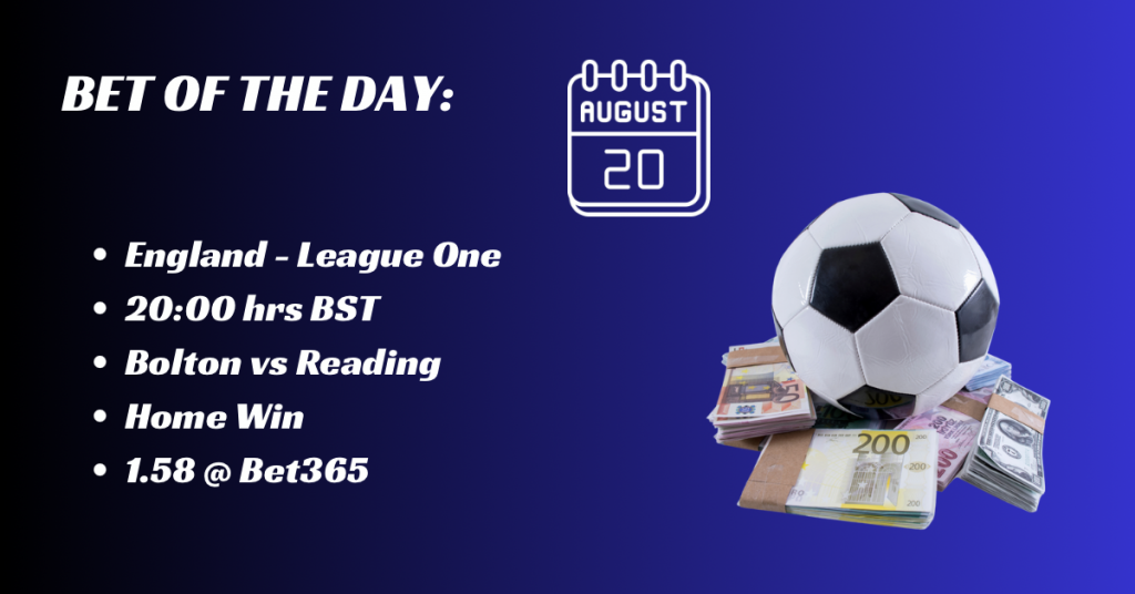 Reading have had a disastrous start to the new season having lost all three of their opening League One fixtures. This evening they visit Bolton knowing the home team have won this fixture 5 – 2 for each of the last two seasons. Bolton have won one, drawn one and lost one in their season’s opening matches but, crucially, their one win was at home.